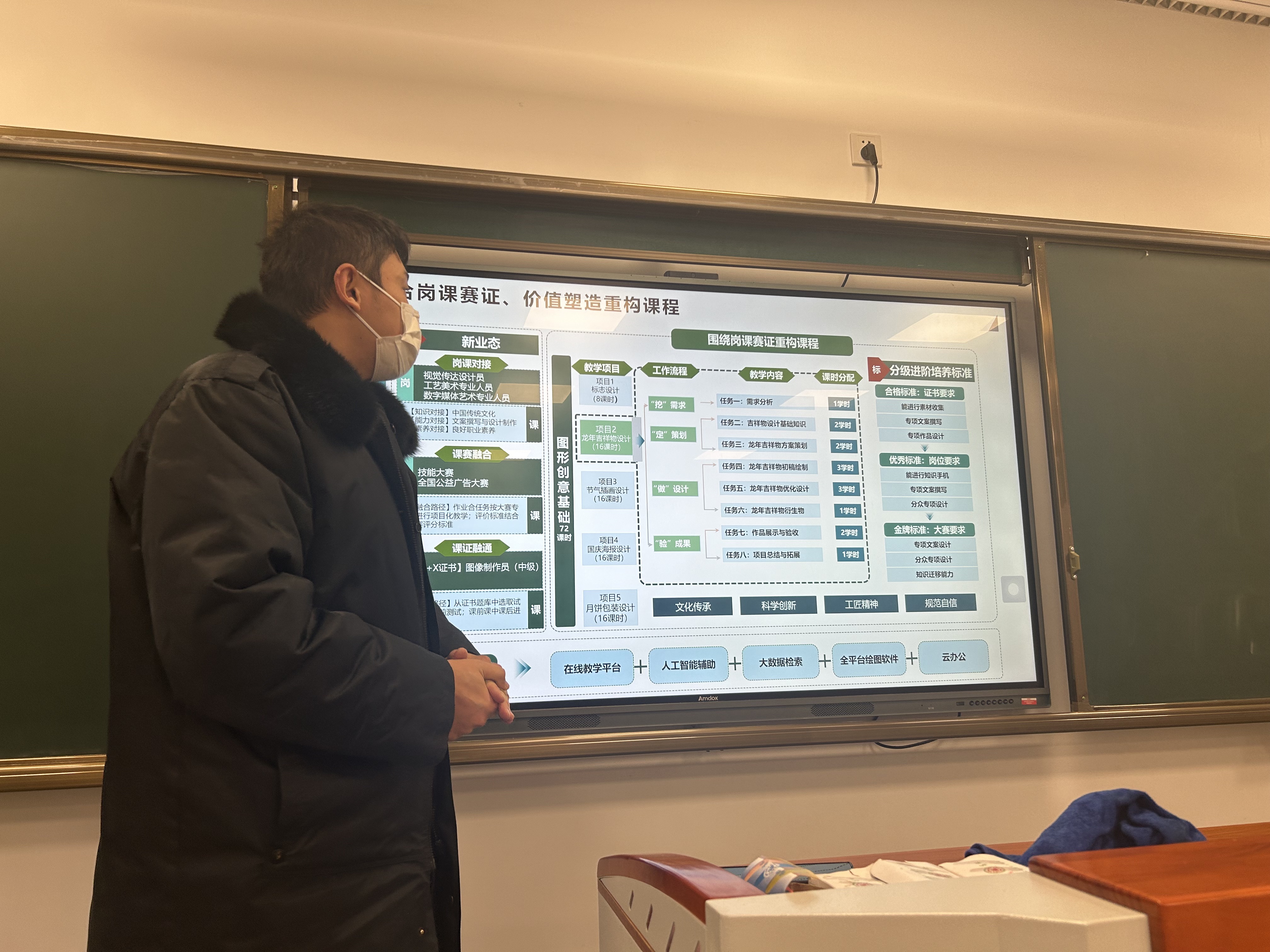 本次比赛共有6组选手上台分享,大家就教学实施报告中的选题理由、教材分析、学情分析、教学策略等相关环节作具体陈述,选手们准备充分,课件精美,讲述中条理清晰,激情昂扬。其中计算组的选题是“设计龙年吉祥物”,切合时令,融入中华传统美学,创造性地运用企业中流行的PDCA理论推动教学,流程清晰直观,任务驱动扎实有效。英语组以宣传古镇为核心任务,制作手绘游览地图,撰写英文版景点介绍词,将专业融入行业体验,打造职业梦想。艺术组围绕社会热点,精选乡村适老化公寓改造项目,采用虚拟仿真技术,解决老年人生活中的痛点。现场,沈校长和姚主任对参赛教师的表现进行了认真主评,并就教学设计、教学理念、教学效果、教学评价等方面进行了针对性指导。