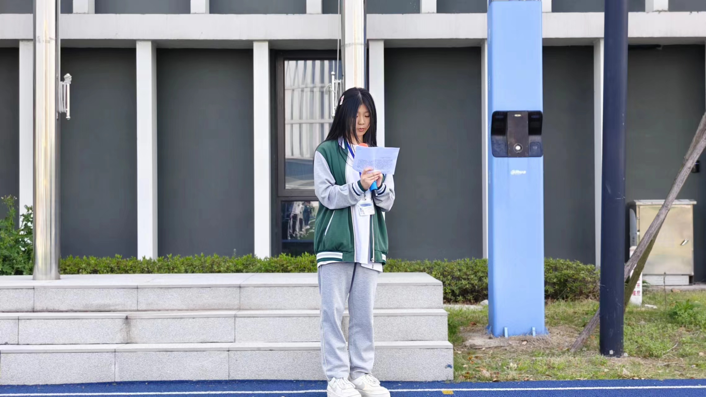 今天国旗下讲话的是2203班的周晗裔同学,她文静可爱,乐于助人 尊重师长。她积极进取,上学期成为了一名共青团员,本学期荣升眼保健操部部长。周同学入学之初就明确了自己的职业理想,未来希望成为一名教师。愿理想之光,照亮前行之路;勇气之力,助她跨越难关。愿她在追逐理想的旅程中,始终充满信心和力量,最终实现自己的梦想。