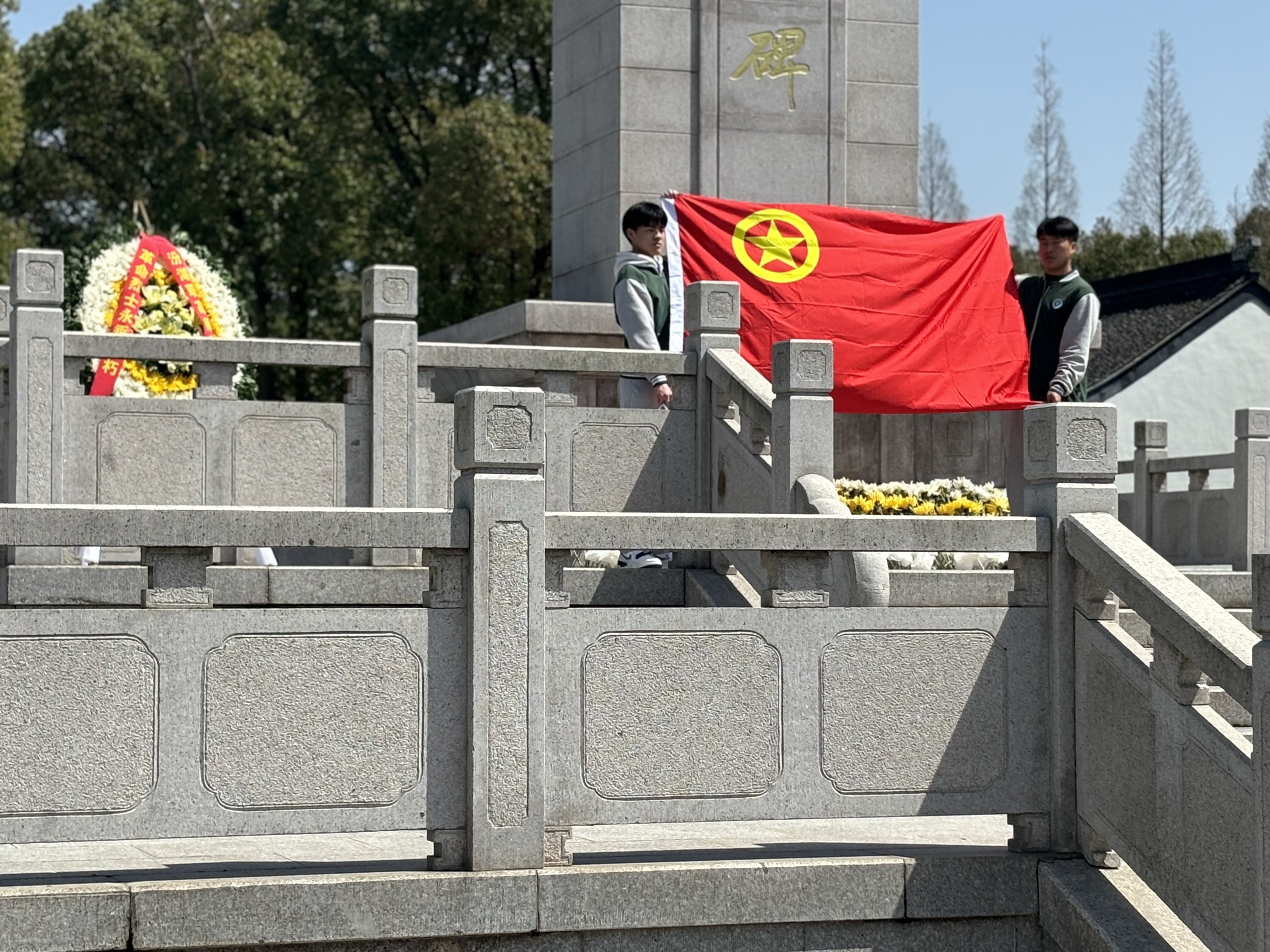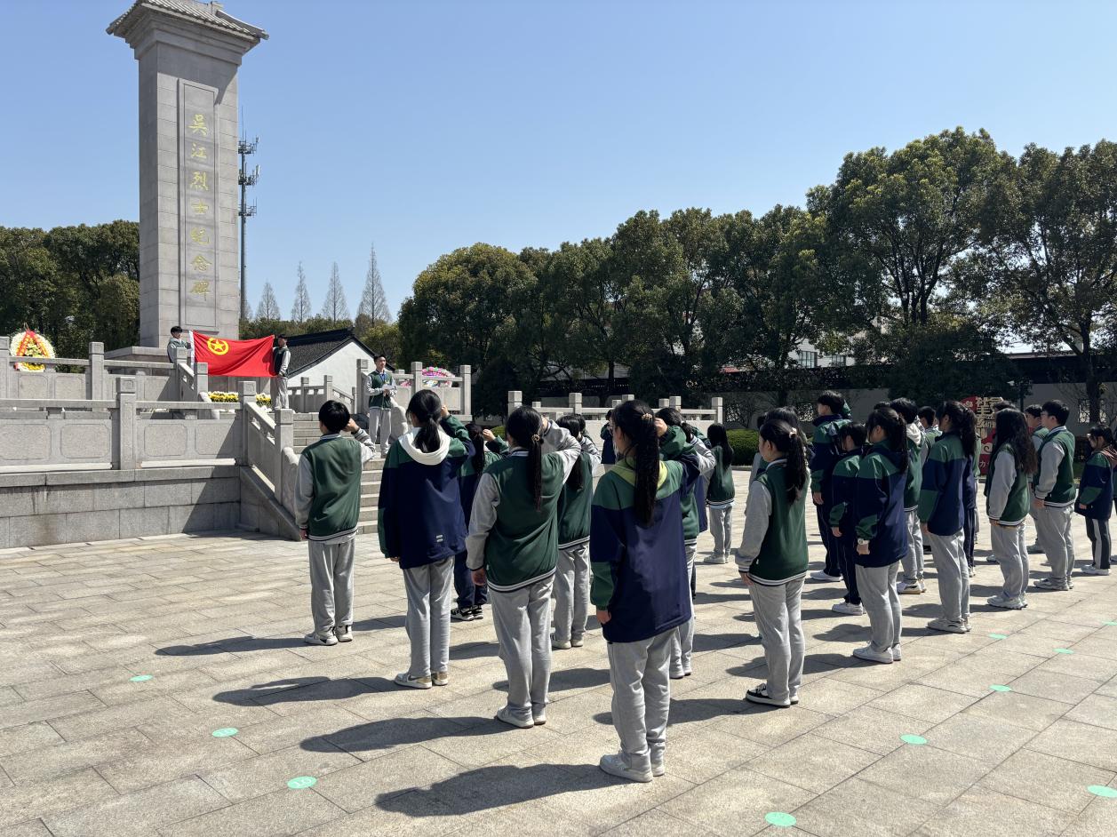 汾湖职高团总支2022、2023级团支部全体团员,怀着无比崇敬的心情,来到了吴江烈士陵园。在庄严肃穆的气氛中,团员们整齐列队,面向烈士纪念碑肃立,举行了隆重的祭扫仪式。