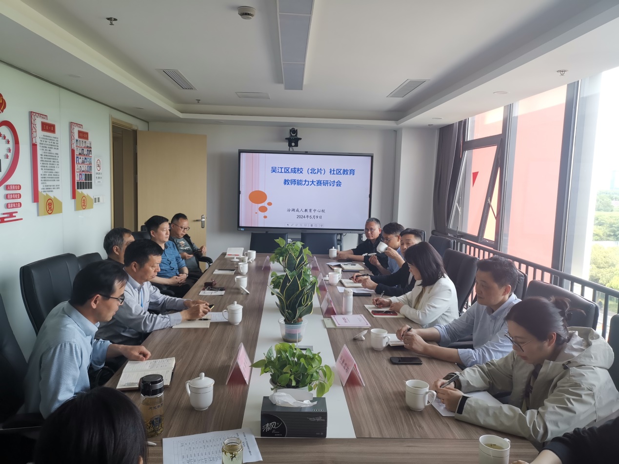 2024年5月9日,吴江区成校(北片区)社区教育教师能力大赛研讨会在汾湖成校举行。此次活动主要是对吴江区首届社区教育教师能力大赛的反思与经验交流,目的就是全面提升社区教育教师教学能力,为即将到来的苏州市级比赛做好赛前准备。吴江区教育局职社科科长袁喜春、吴江区成校北片区片长易平,太湖新城成校、同里成校、平望成校、汾湖成校四所学校的校长及参赛教师共同参与了这次活动。