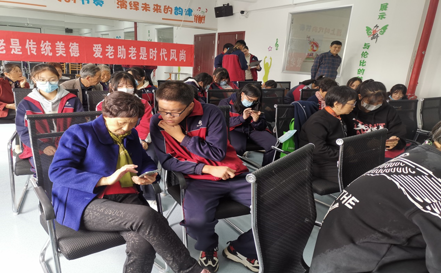 其次,在老少互学共成长活动项目中,融入以老年人智能手机培训项目,以智能手机培训为抓手,充分调动汾湖职高学生志愿者的积极性,在家里开展老年人智能手机培训,要求每一位学生为家里的爷爷奶奶教会一项智能手机应用技术,丰富老少互学的内容。增进家庭隔代亲情,营造和谐的家庭环境。