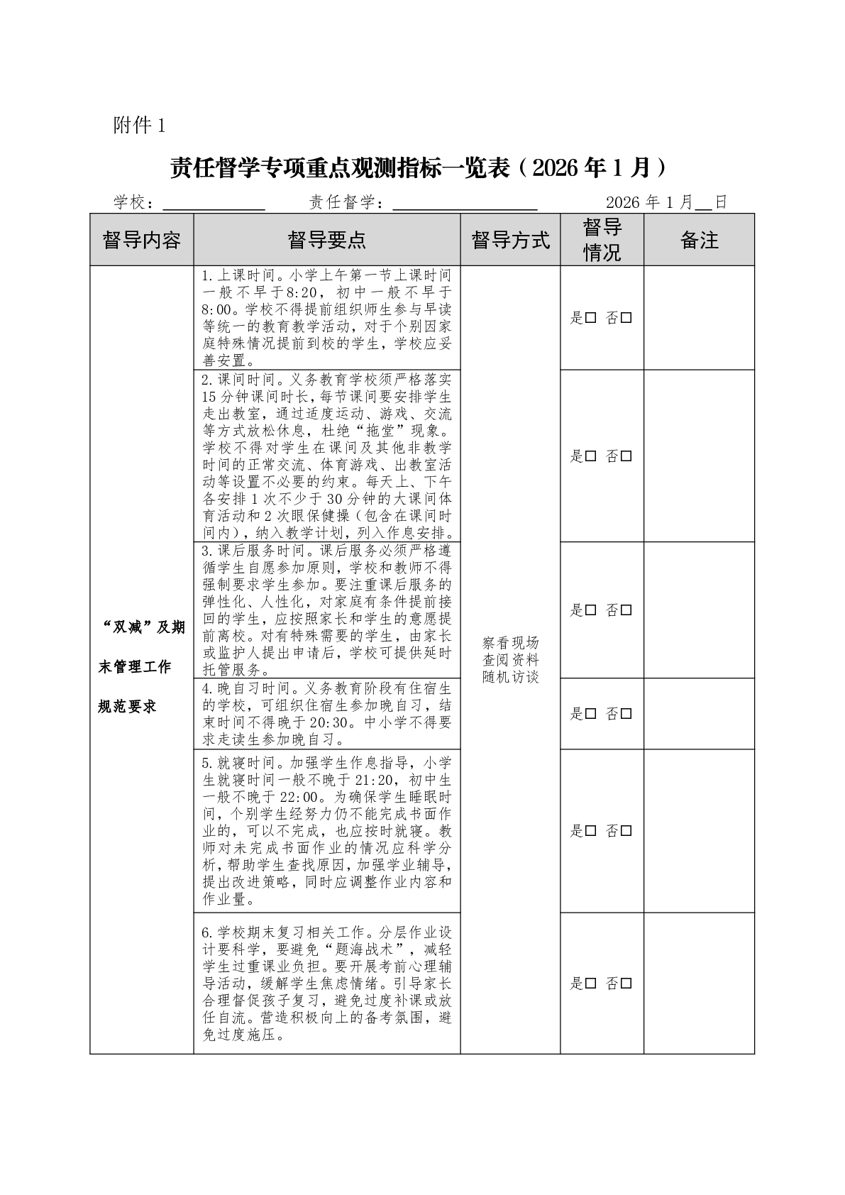 2026年1月份挂牌督导工作安排