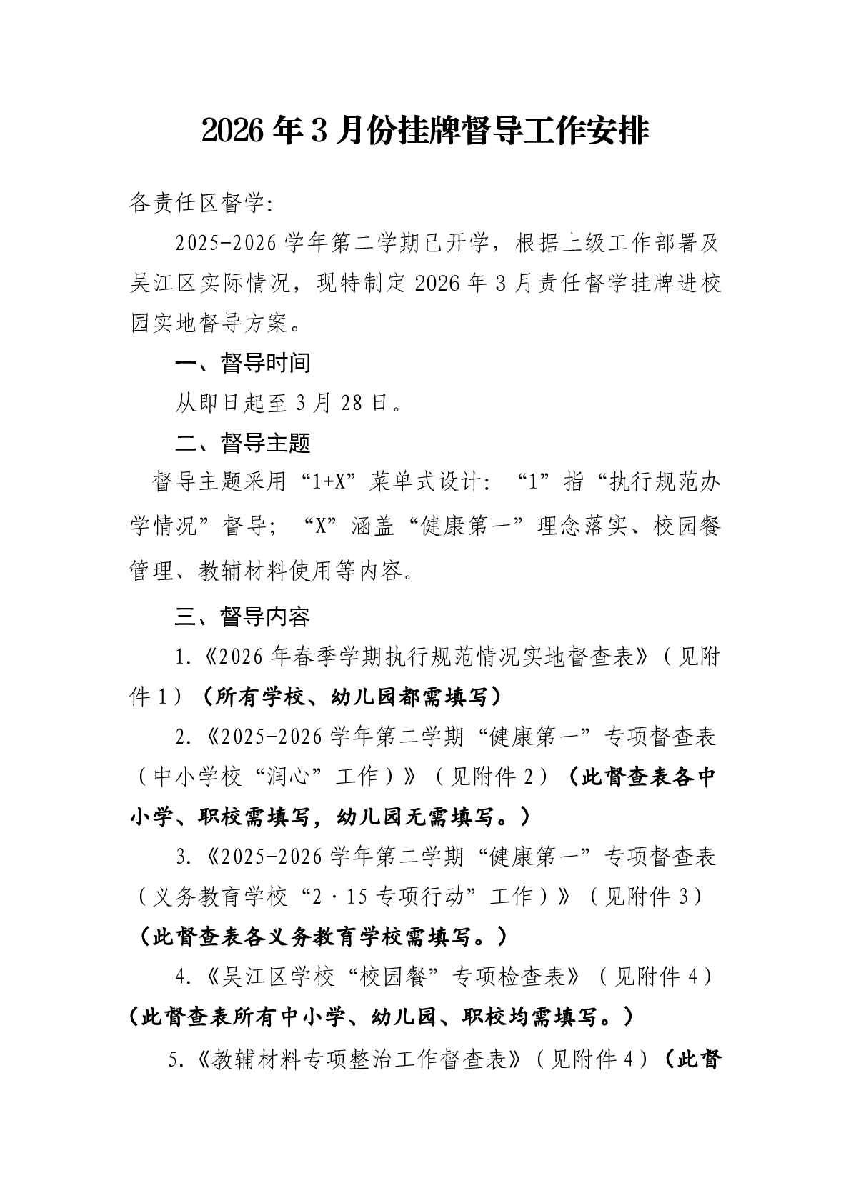 2026年3月份挂牌督导工作安排